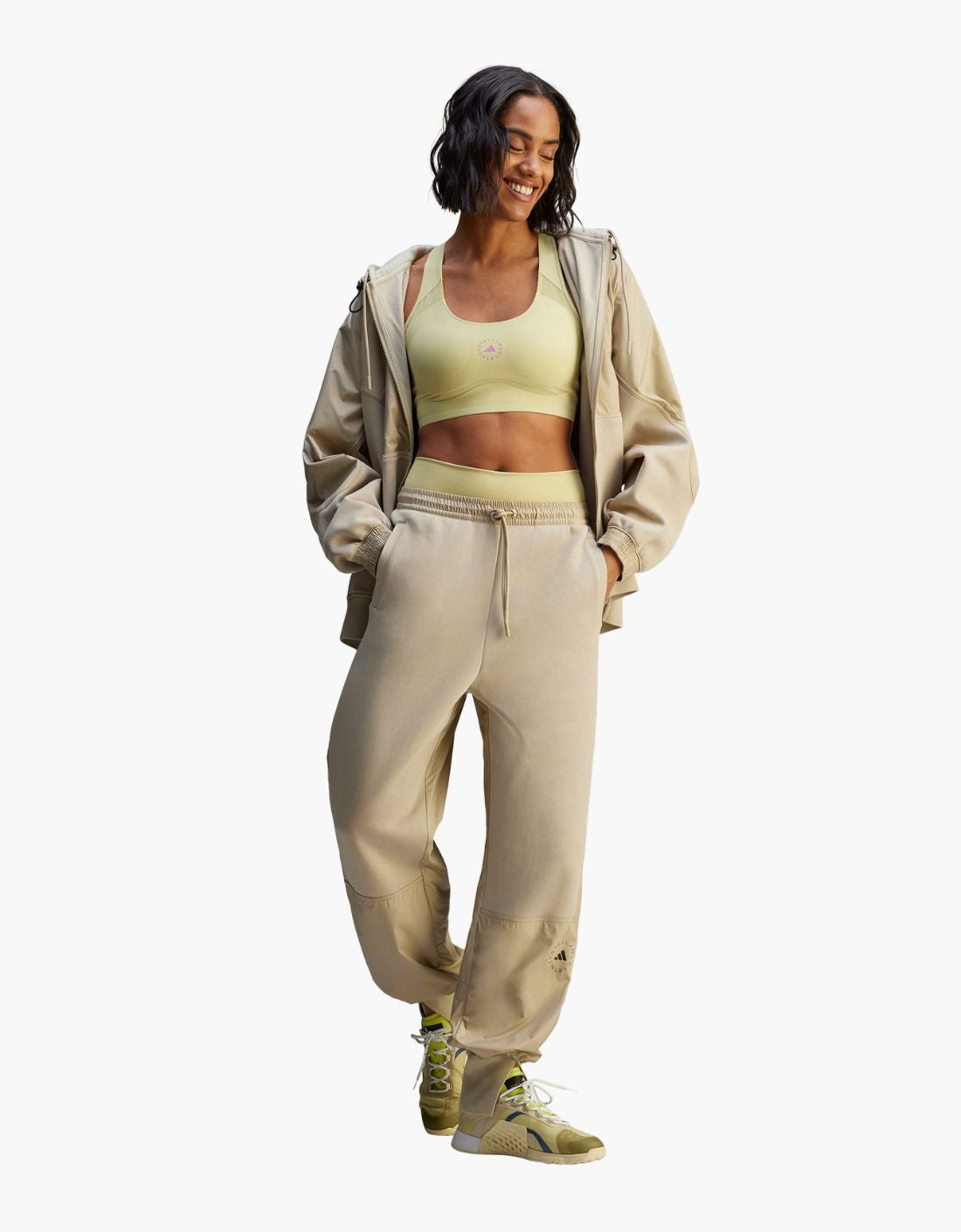 Indulge in the luxury of the adidas by Stella McCartney Material Mix Pants . These women's sweatpants are made from a blend of 60% organic cotton and 40% recycled polyethylene terephthalate (rPET). The regular fit and adjustable drawstring waist offer comfort throughout your daily activities. Stella McCartney logos add a sophisticated touch. Made partially from recycled and renewable materials, these pants reflect adidas' commitment to sustainability.